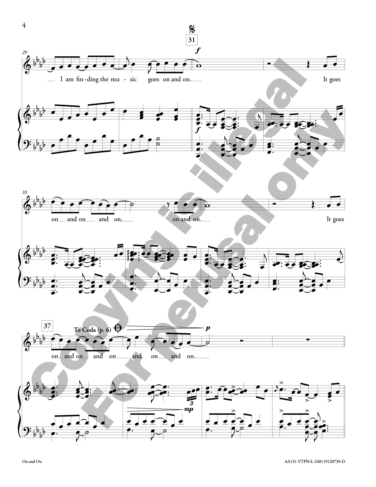 On and On is a bright, hopeful piece about overcoming the challenges of life. It's an upbeat, syncopated piece with interludes of heartfelt piano.